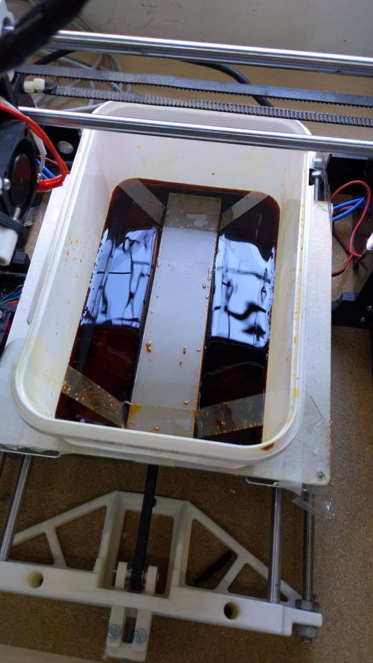 - I use my old Anet A8 3D printer (bed slinger, with a moving Y axis) to do the warming and stirring. I used gcodepy to create a gcode that warms the bed to 50°C, moves the extruder out of the way and makes the bed move back and forth following a sine wave for stirring.