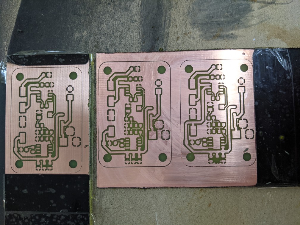 For the past couple of months I have been trying to make my own PCBs, using the laser engravers we have at the Fablab. Other makers had tried before, with poor results. It’s as if a slight greasy patina would remain on the board after engraving, making it impossible to actually etch away the copper using acid. After about 4 weeks of experiments (the fablab is open only on Saturdays), lots of advice from other makers, and a decent quantity of youtube videos and Hackaday articles on the subject, I managed to arrive at a reliable process to make my own PCBs.